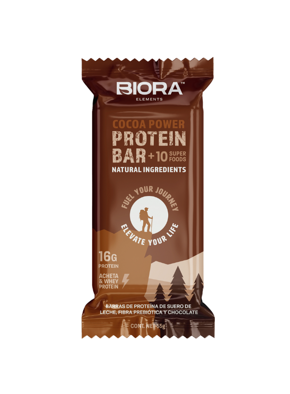 Potencia tu día con Cocoa Power, la barra de proteína con el equilibrio perfecto entre nutrición y sabor a chocolate puro. Con 16g de proteína de whey protein y acheta, es la opción ideal para la recuperación muscular y la energía duradera.